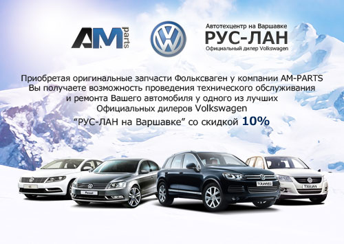 На сегодняшний день компания AM-PARTS является партнером официального дилера Volkswagen Фольксваген центра РУС-ЛАН на Варшавке - старейшего представителя концерна из представленных в Москве.